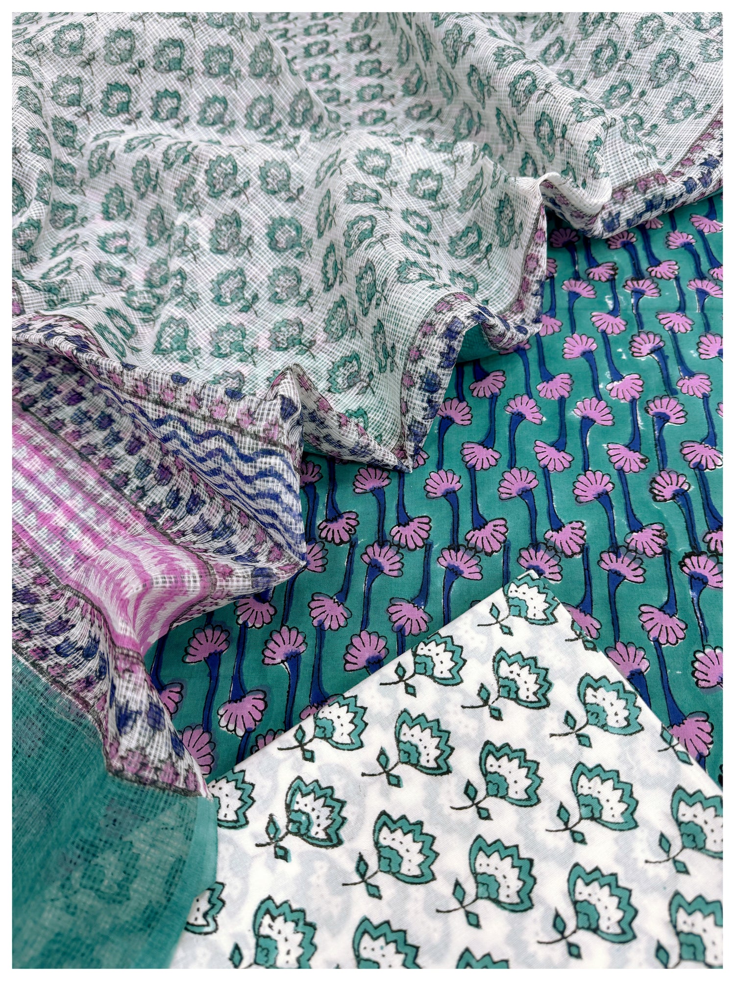 The process begins with the preparation of natural dyes derived from plants, roots, flowers, and minerals. These dyes are often sourced from sustainable and eco-friendly materials, making hand block printing a more environmentally friendly alternative to synthetic dyes. Common natural colors include indigo, madder, turmeric, pomegranate, and various tree barks.