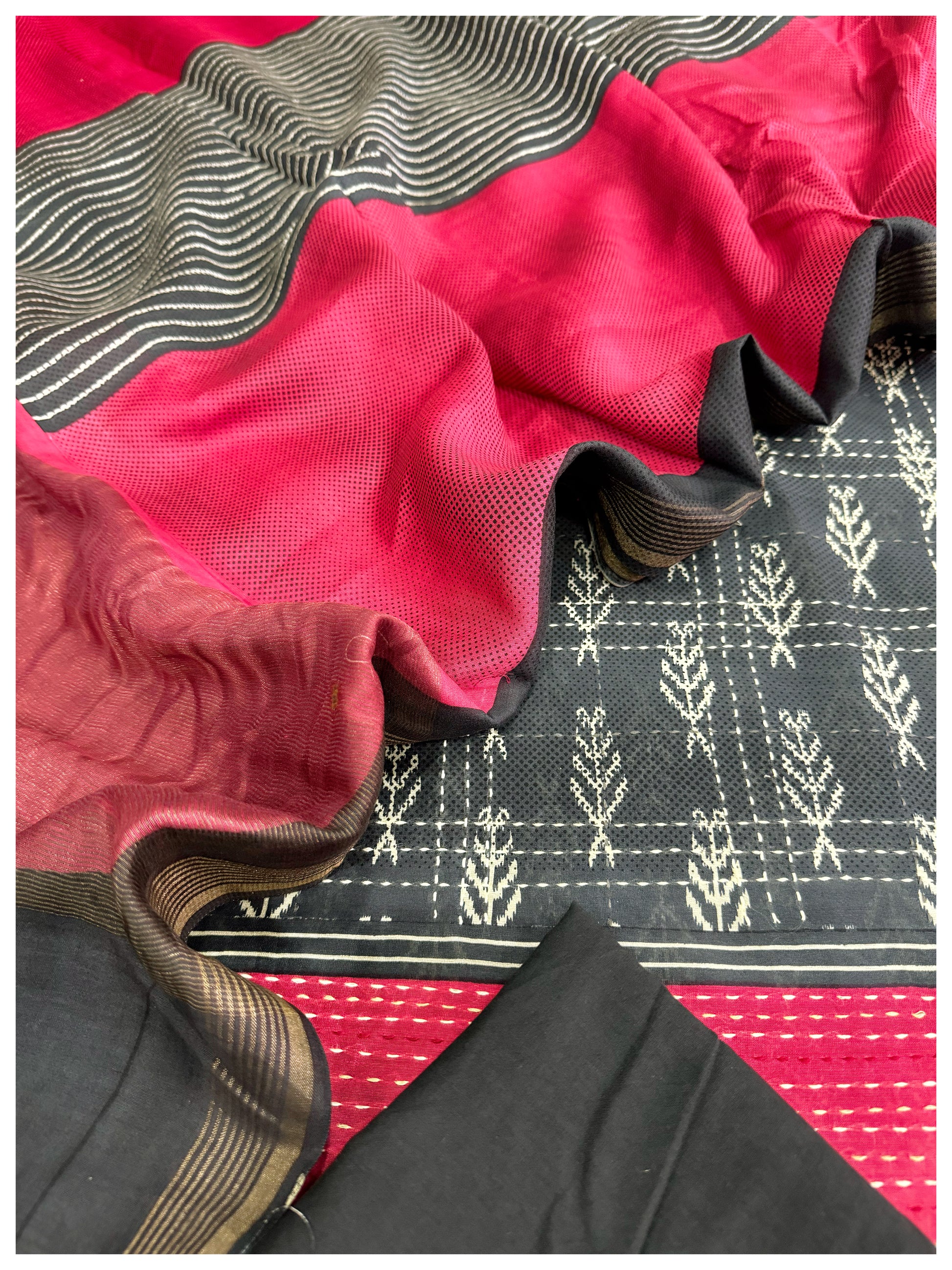 2.5m Pure Chanderi Silk with Kantha Work |